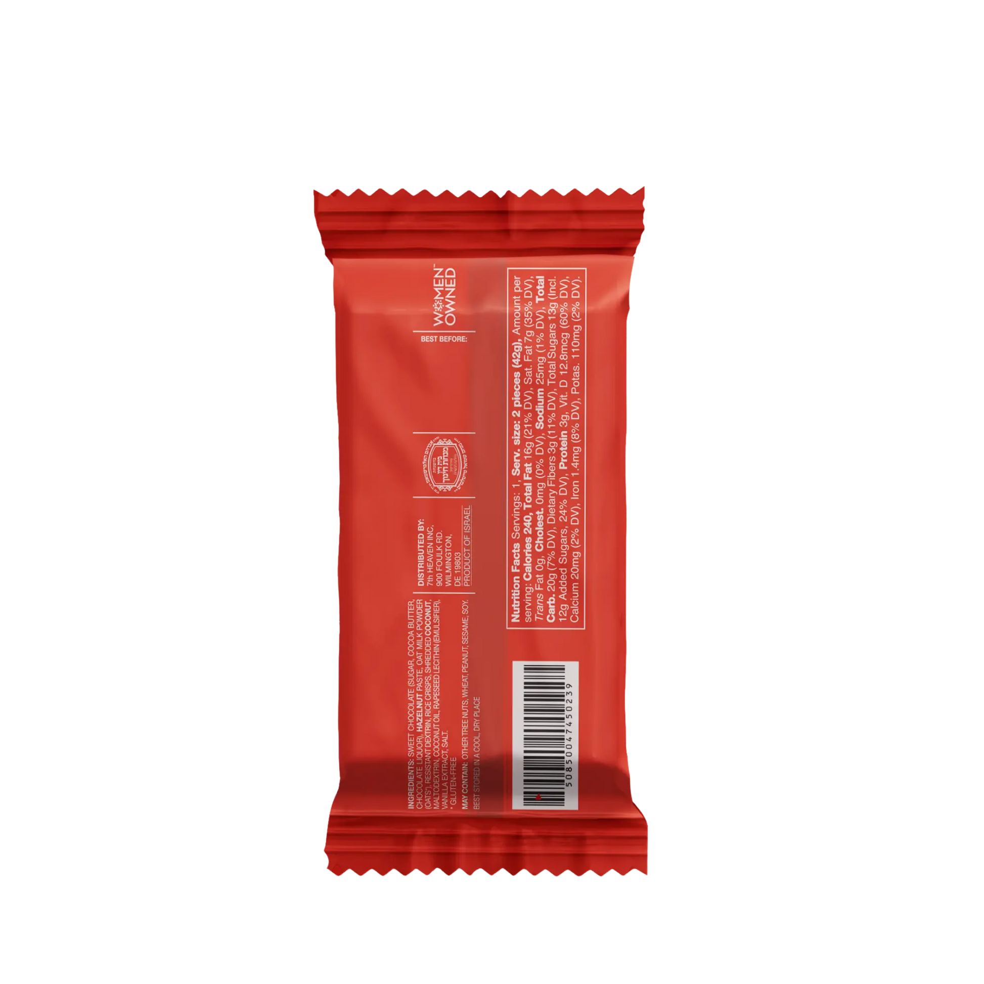Ingredients: Sweet Chocolate (Sugar, Cocoa Butter, Chocolate Liquor), Hazelnut Paste, Oat Milk Powder (Oats*), Shea Butter, Rice Crisps (Rice, Sugar, Salt), Resistant Dextrin, Shredded Coconut, Maltodextrin, Coconut Oil, Rapeseed Lecithin (Emulsifier), Vanilla Extract, Salt MAY CONTAIN: Other Tree Nuts, Wheat, Sesame, Soy