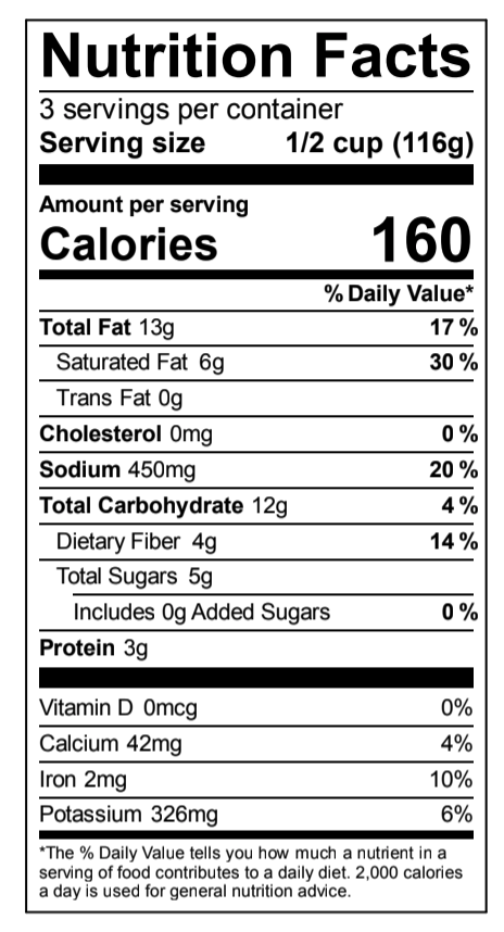 Ingredients: water, onions, organic coconut cream, tomato paste, non-gmo expeller pressed canola oil, coconut, ginger, lemon juice, garlic, spices (including turmeric), tamarind, salt, non-gmo cashew butter.