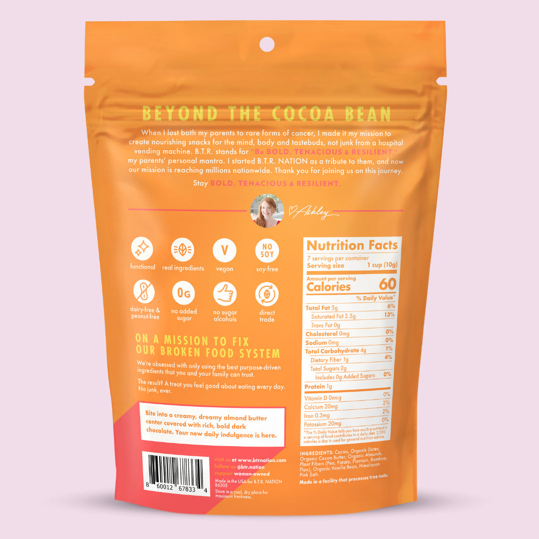 Decadent dark chocolate meets nutty, creamy roasted almond butter. Nutty & nostalgic. Who needs peanut butter when you have creamy roasted organic almond butter, am I right?