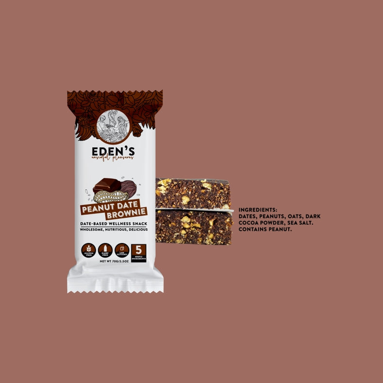 Imagine peanut and brownies hugged in a sweet embrace. Indulge in the fudginess of dates, the decadence of chocolate and the nuttiness of peanuts in this match made in the garden of Eden’s.
