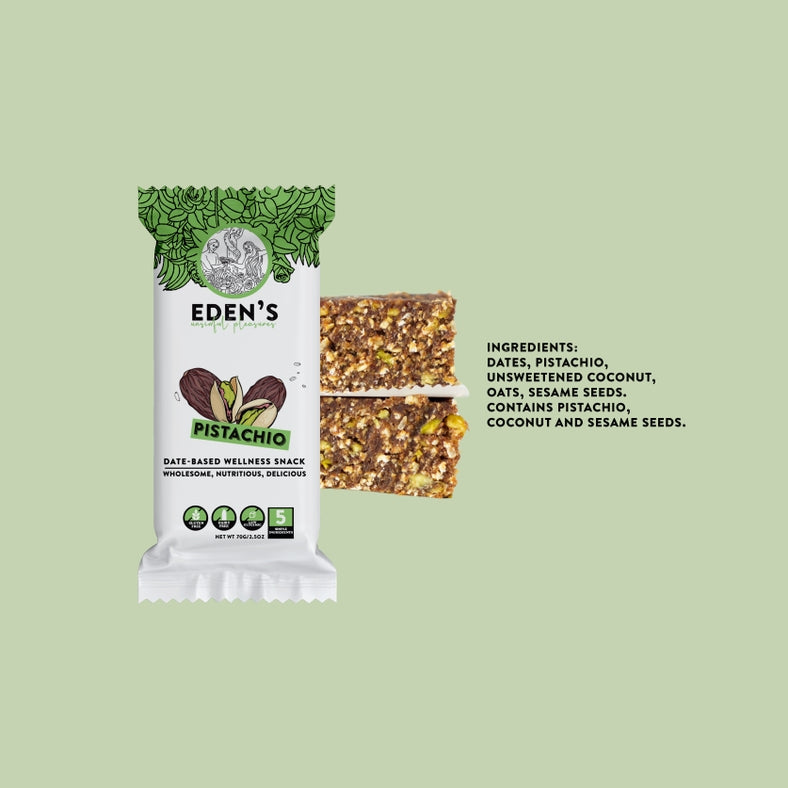 Imagine pistachio, coconut and dates went for a dance! Indulge in nature’s candy with nutritional benefits from Eden’s wholesome garden for all ages.