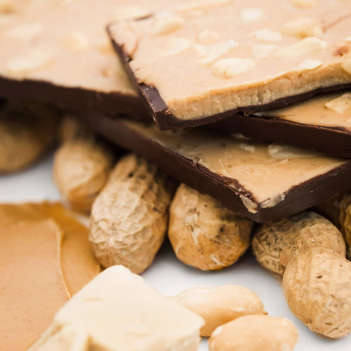 It's the peanut / chocolate after party — and you're invited. Rich organic peanut butter folds into our plant-based white chocolate blend before getting piped into half of a dark chocolate shell. (That's right, only half.) The better to see the peanut butter deliciousness my dear. Creamy. Dreamy. Oh, and then we top it with EVEN MORE PEANUTS. Because that's the kind of mad scientist wackadoos we are.