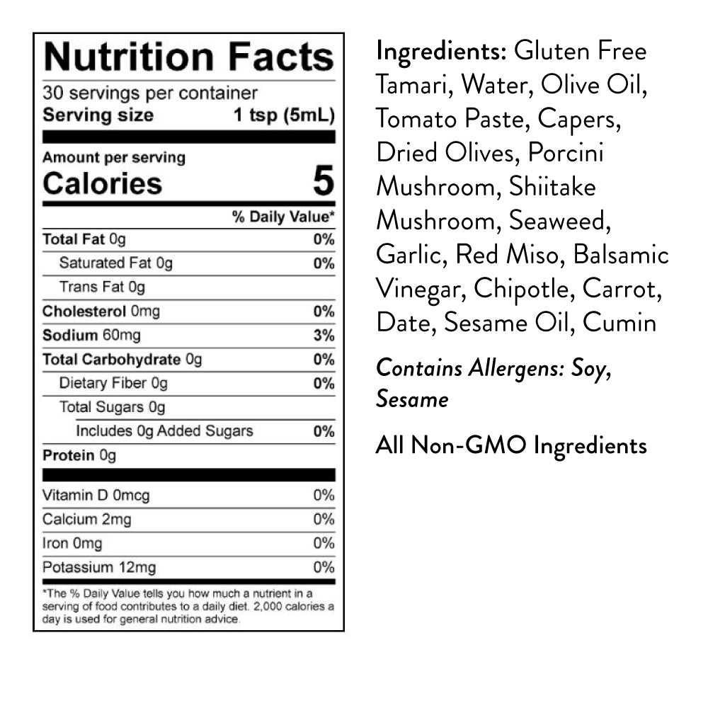 This sauce delivers tons of umami. The blend of savory ingredients like porcini mushrooms, oven-dried olives, capers, and garlic, all work together to create a mouth-watering explosion of flavor for any dish that needs a little kick in the taste buds.