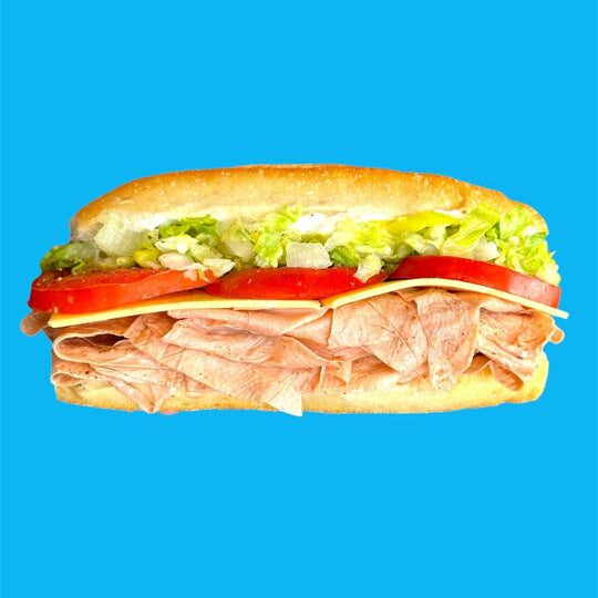 house yuba ham, provolone, tomato, roasted red peppers, banana peppers, lettuce, red wine vinaigrette, lemon basil aioli on a toasted hero
