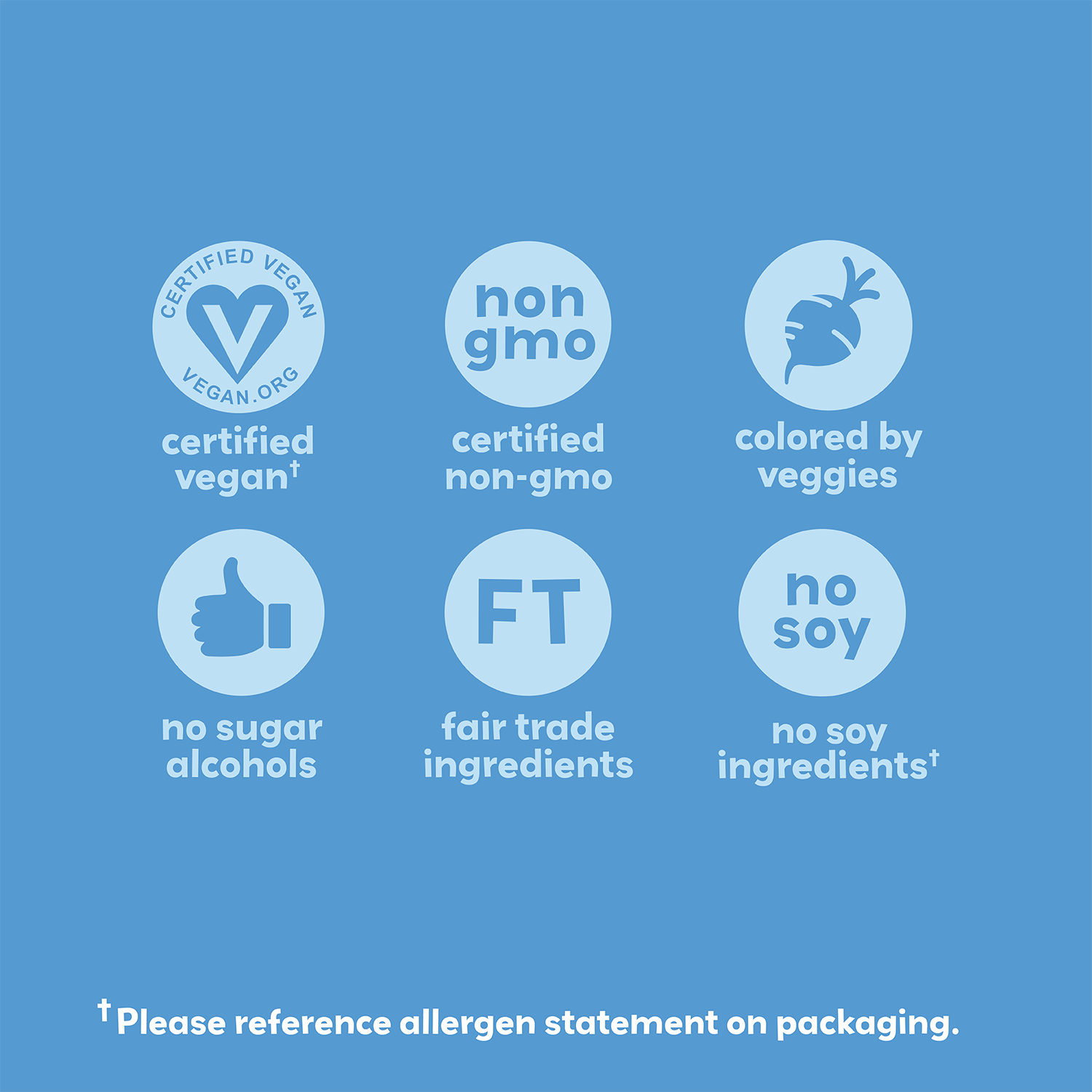 Ingredients: dark chocolate (chocolate liquor, cane sugar, cocoa butter, vanilla), roasted peanuts (peanuts, peanut oil), organic cane sugar, gum acacia, colored with (beet juice, spirulina extract), organic tapioca syrup, carnauba wax.
