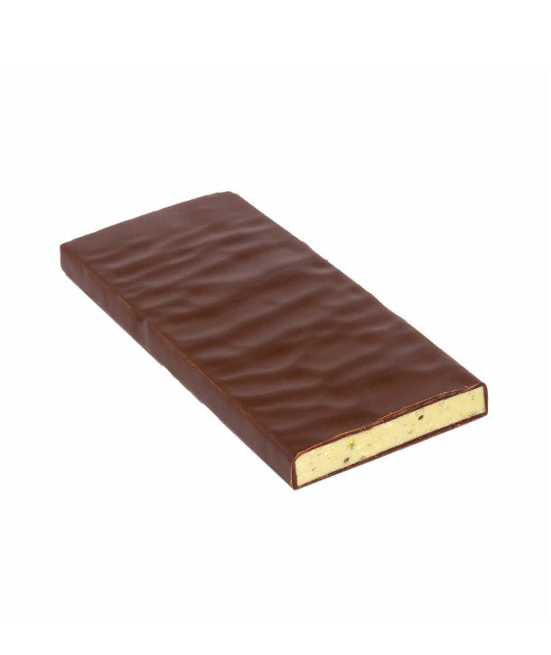 The power pack: hemp praline with caramelized hemp seeds full of energy. On top sits a thin layer of white coconut couverture and it’s covered with dark chocolate with a 70% cocoa content. Completely vegan and so delicious!